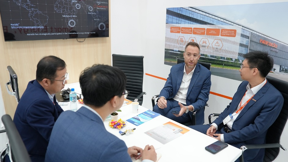 展位上,欧博体育app展出了全新升级的Center L Max 8.338MWh储能系统。该系统搭载南都自研超大容量固态电池,系统能量密度和安全性均得到大幅提升。